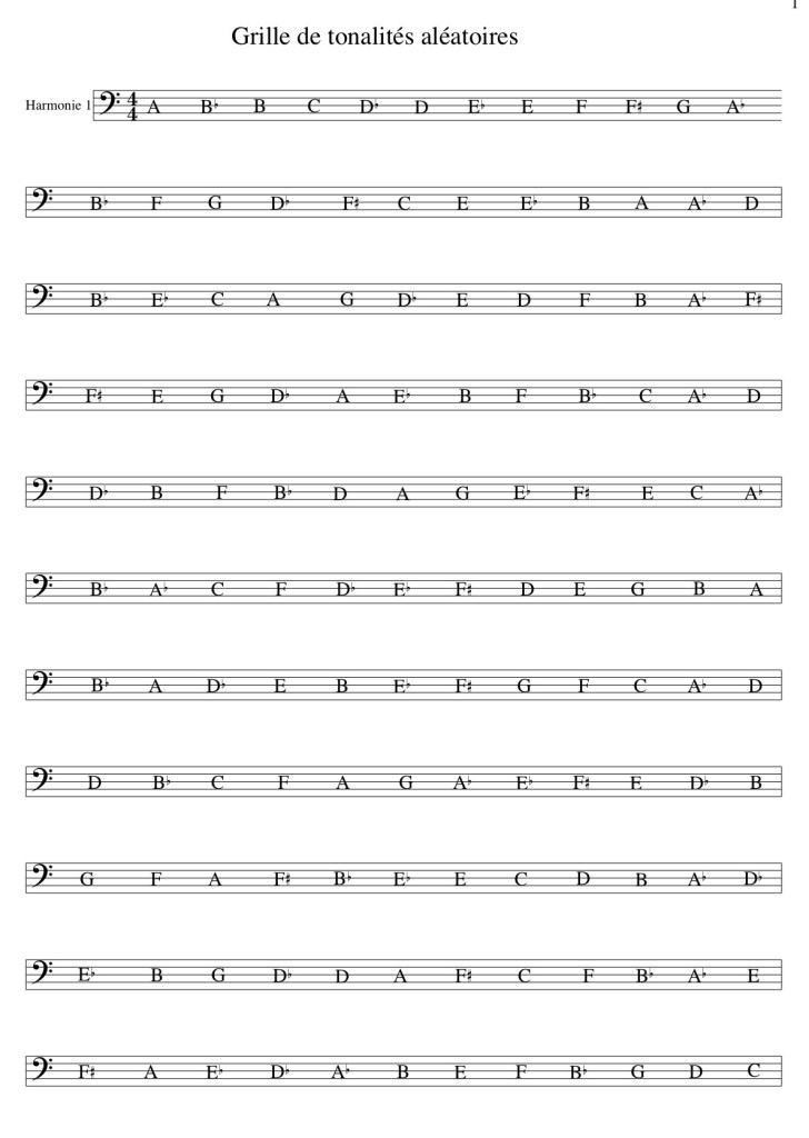 Exemple de grille de tonalités aléatoires : Voici une série de tonalités à utiliser pour vos exercices :