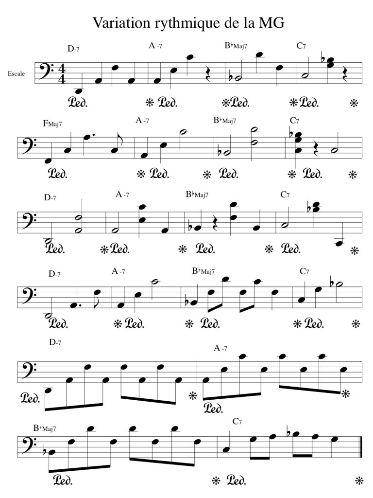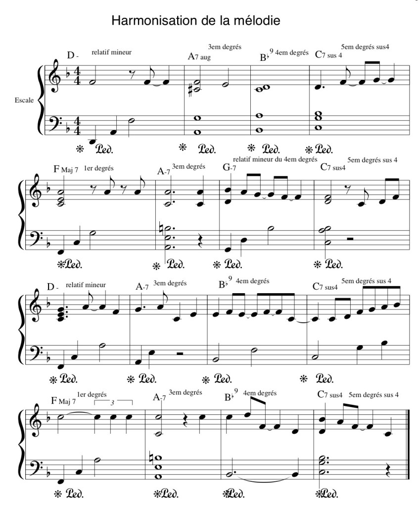 La pédale de sustain sera utile, prévoir une pédale par mesure mais ne jamais mélanger 2 harmonies différentes.