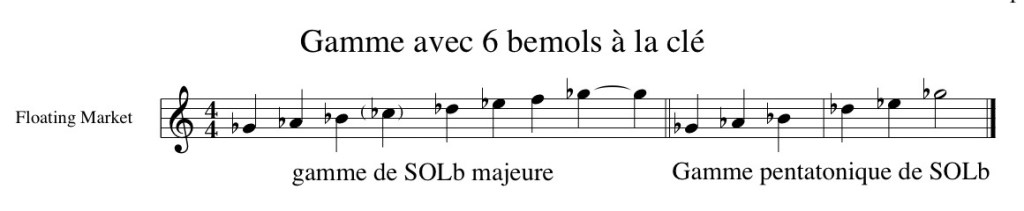 La gamme d’origine avec 6b à la clef est une gamme de SOLb majeure mais peut être vue aussi comme une gamme à 5 notes (pentatonique) de SOLb.