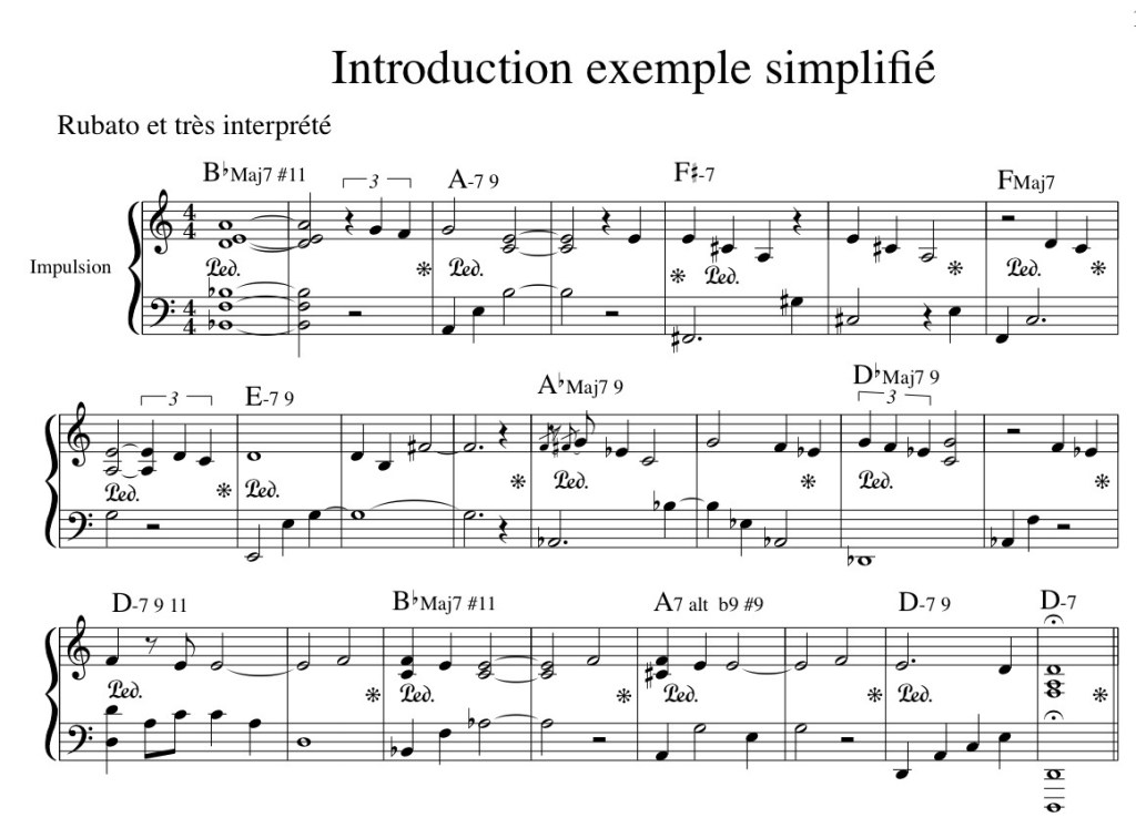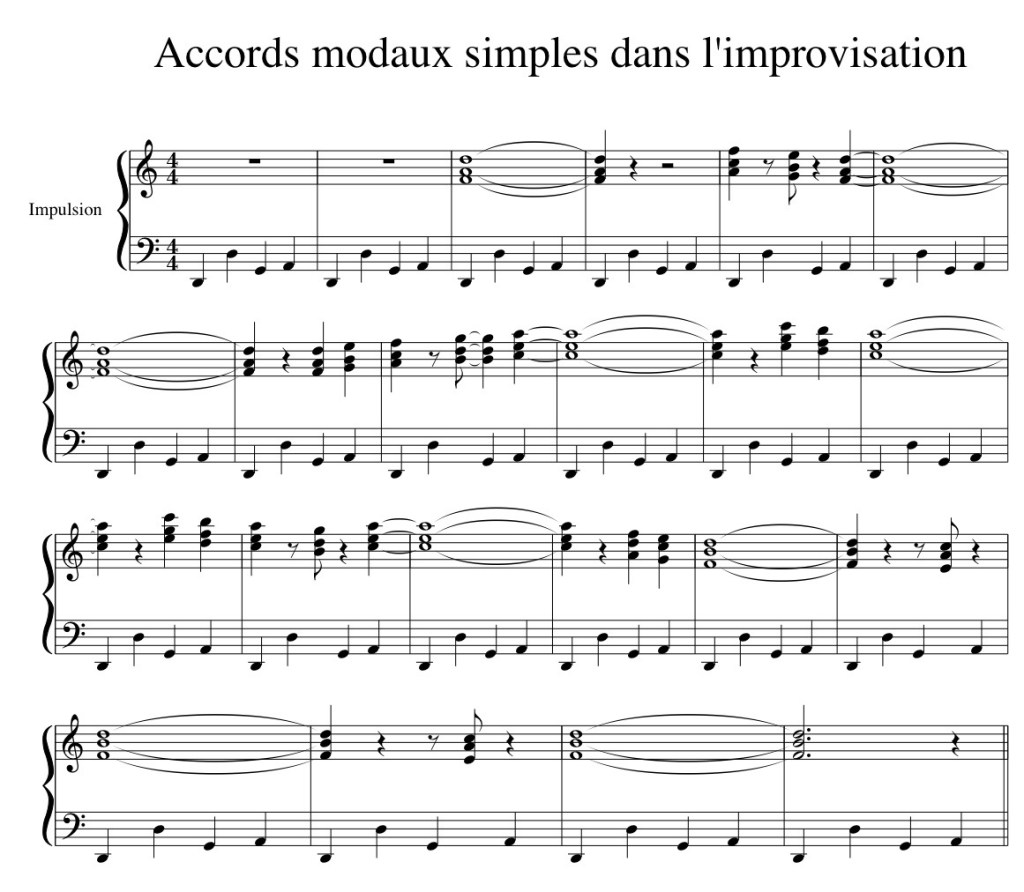 « Impulsion » est une pièce composée en 1991, inspirée par la simplicité d’une phrase répétitive à la main gauche. Cette base rythmique et harmonique permet d’improviser une infinité d’idées à la main droite. C’est ce concept que nous allons explorer et mettre en pratique dans ce morceau.