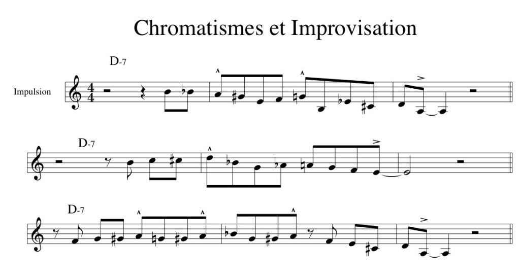 La seconde piste d’improvisation dans un esprit jazz et un tempo rapide sera d’utiliser les approches chromatiques afin de viser une note appartenant à l’accord ou à une extension intéressante de cet accord.