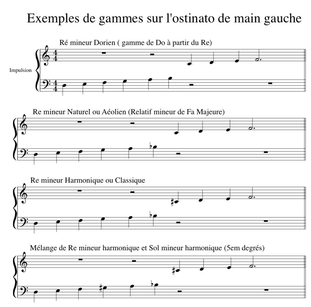 N’hésitez pas à mélanger ces gammes sur l’accord de l’ostinato.