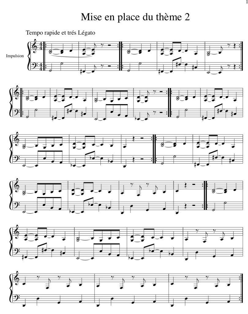 Jouez le thème 1 deux fois puis le thème 2 deux fois aussi en ralentissant sur la fin pour terminer.