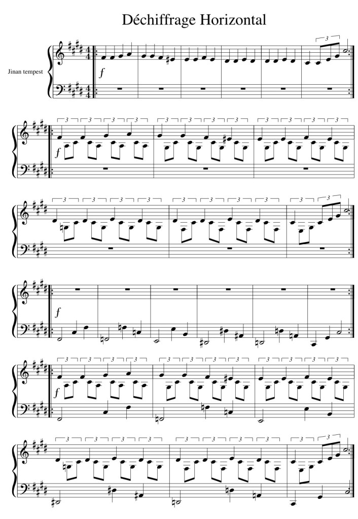 Les mesures qui suivent ne font que reprendre le schéma des deux premières mesures, mais avec des notes différentes.