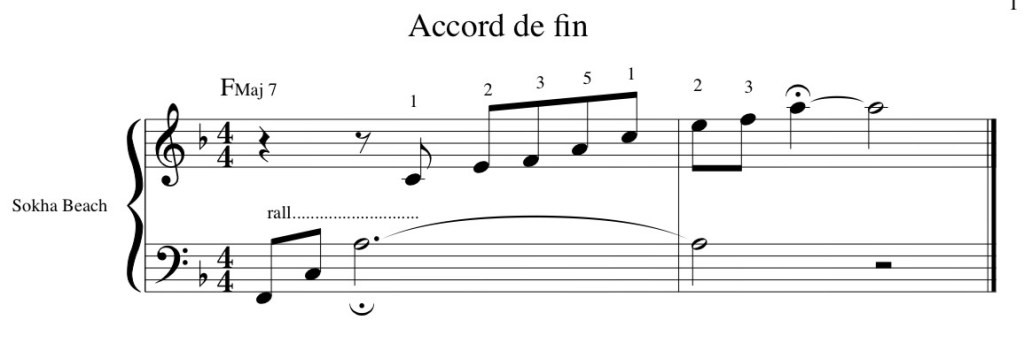 L’ accord ou l’arpège de fin peut s’inspirer des accords avec extensions avec une MG en Fa
