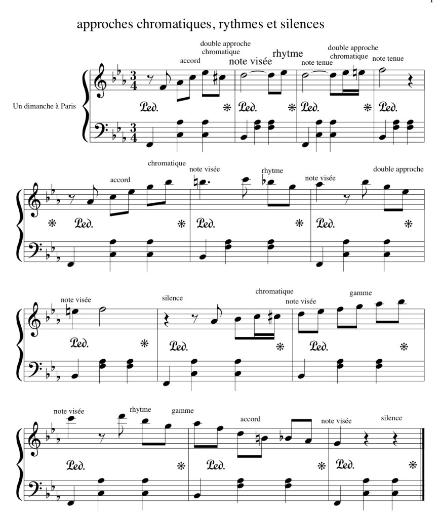 Dans le cas d’une utilisation de la pédale de sustain (pédale de droite), en prévoir une par mesure, elle accentuera l’effet de légato.